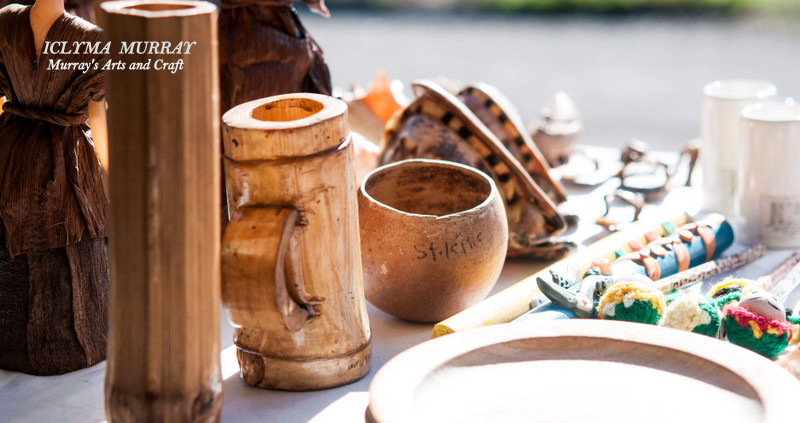 SANDALS, DECORATIVE BANANA LEAF DOLLS, BANANA LEAF BAGS, JEWELRY AND CRAFTS FROM SEA SHELLS, COCONUT, AND BAMBOO DESIGNED BY ICYLMA MURRAY